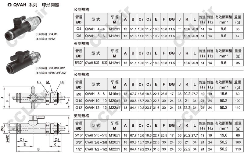 氣立可(chelic),QVAH6-6,QVAH8,QVAH10,QVAH12,QVAH4-4,QVAH5/32,QVAH5/16,QVAH3/8,QVAH1/2