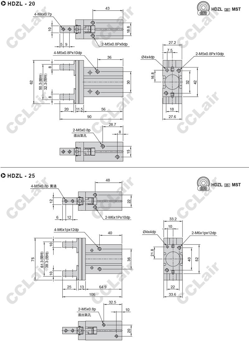 HDZL-10-ST2,HDZL-16-ST2,HDZL-20-ST2,HDZL-25-ST2,滑軌型平行機(jī)械夾