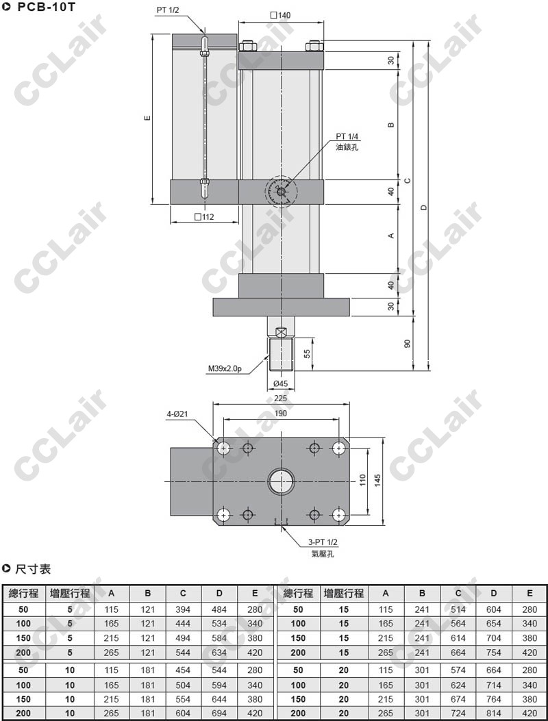 氣立可(chelic),PCB-1T-50-5,PCB-3T-100-10,PCB-5T-150-10,PCB-8T,PCB-10T,增壓缸
