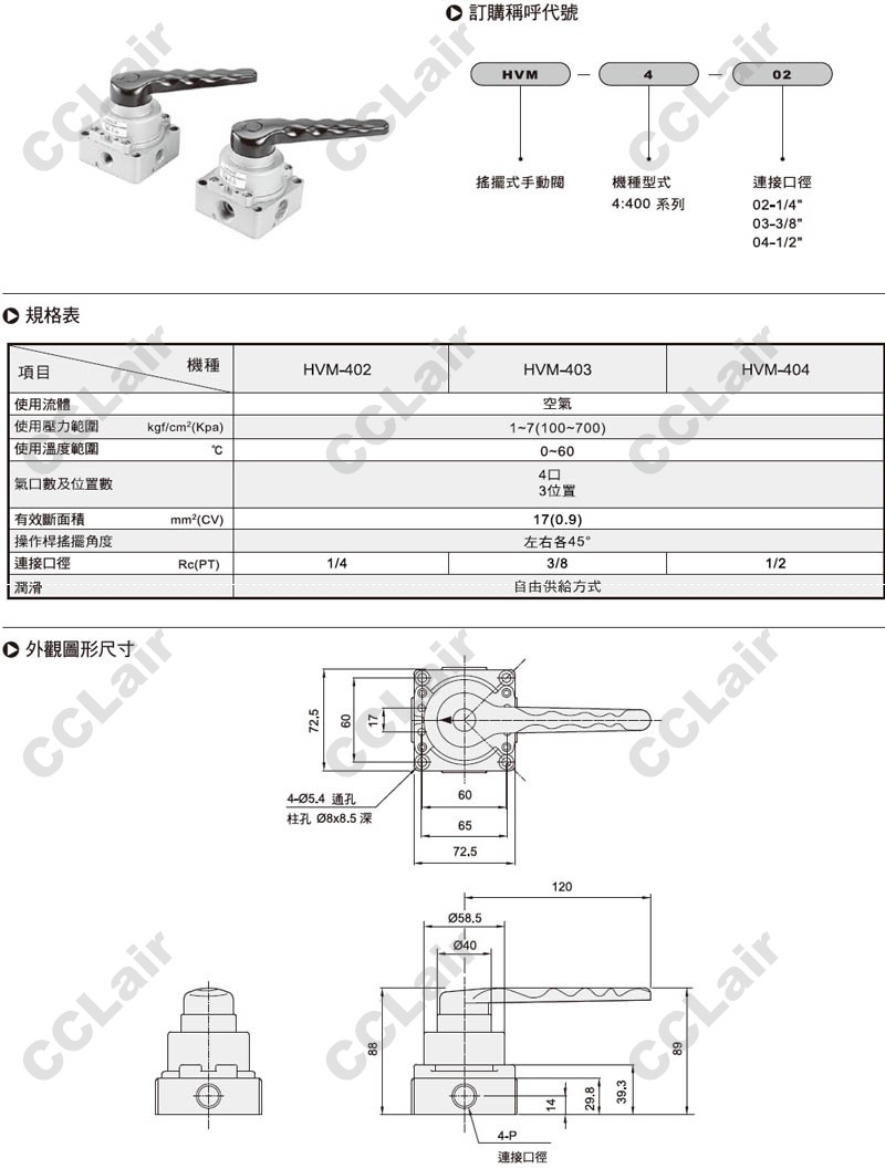氣立可(chelic),HVM-402,HVM-403,HVM-404,搖擺式手動(dòng)閥