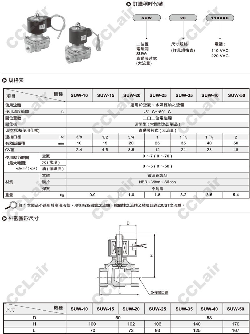 氣立可(chelic),SUW-20,SUW-25,SUW-35,SUW-40,SUW-50,SUW-10-110VAC,SUW-15-220VAC,電磁閥 |