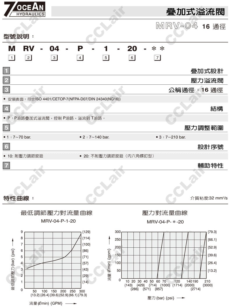 MRV-04-P-1-10,MRV-04-P-2-10,MRV-04-P-3-10,MRV-04-P-1-20,MRV-04-P-2-20,MRV-04-P-3-20,7OCEAN七洋疊加式壓力溢流閥