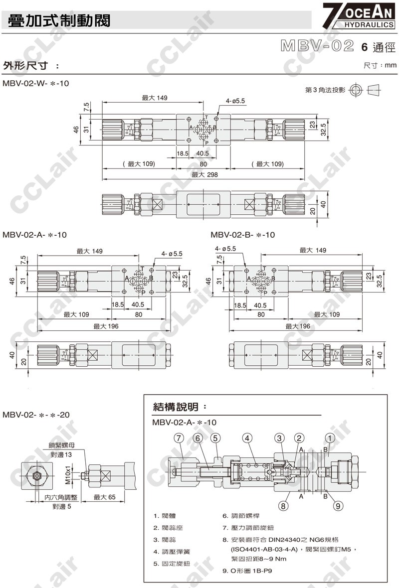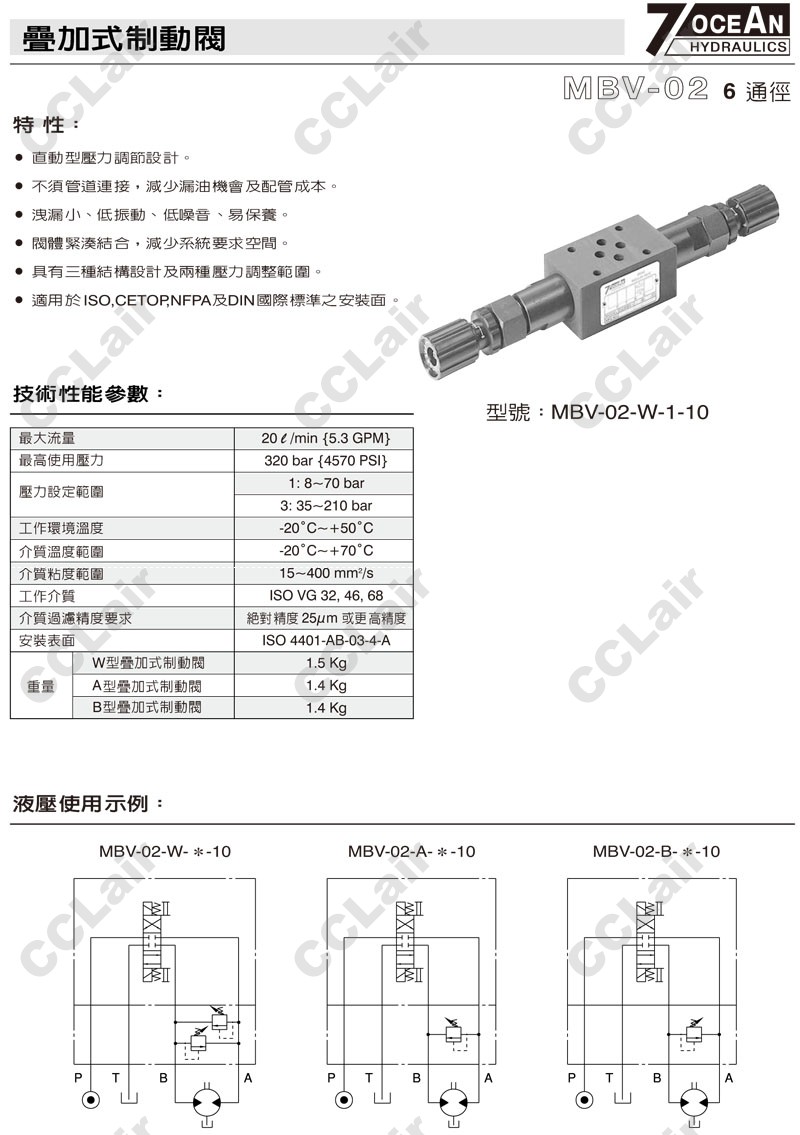 詳細(xì)信息 MBV-02-W,MBV-02-A,MBV-02-B,MBV-02-W-1-10,MBV-02-A-1-20,MBV-02-B-3-20,7OCEAN七洋疊加式壓力制動(dòng)閥