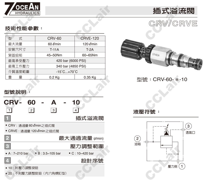 CRVE-120-A-10,CRVE-120-B-10,CRVE-120-C-10,CRVE-120-A-20,CRVE-120-B-20,CRVE-120-C-20,7OCEAN七洋插式溢流閥