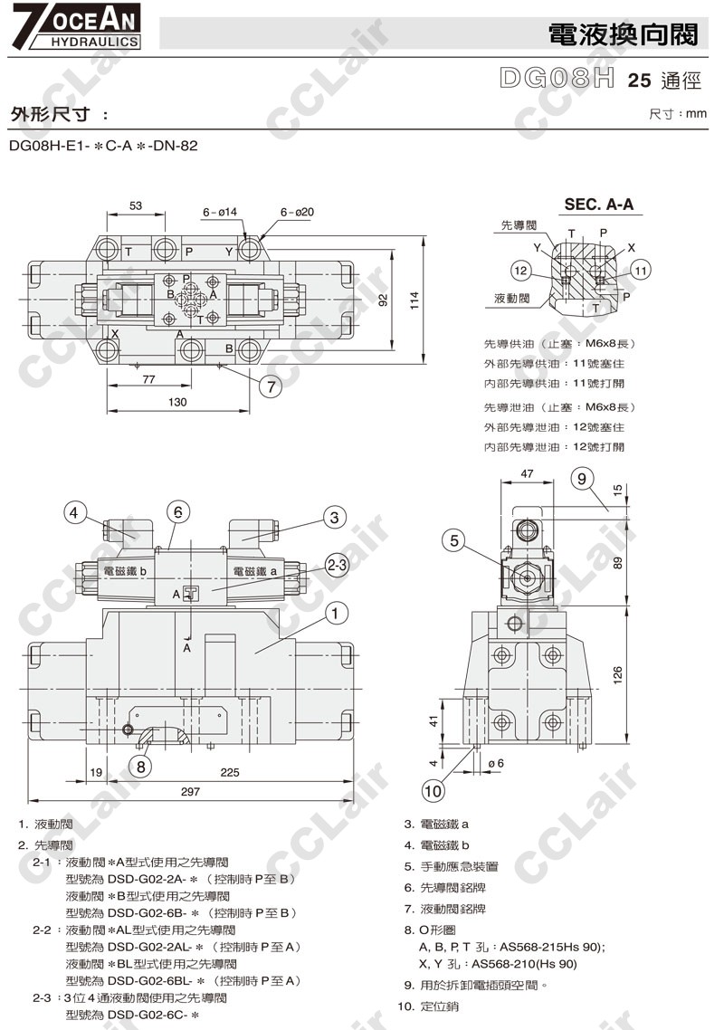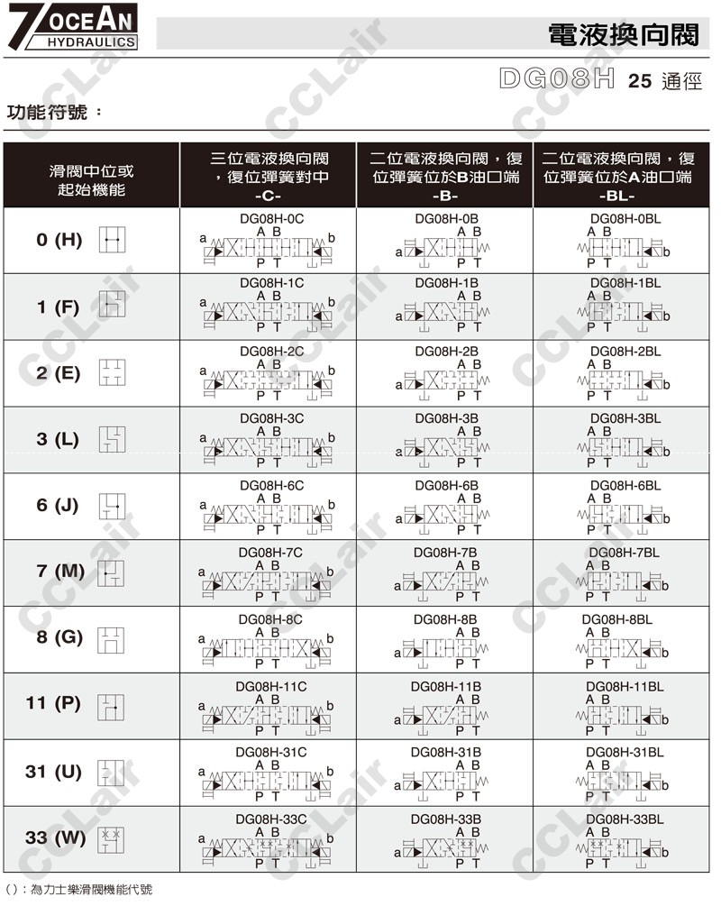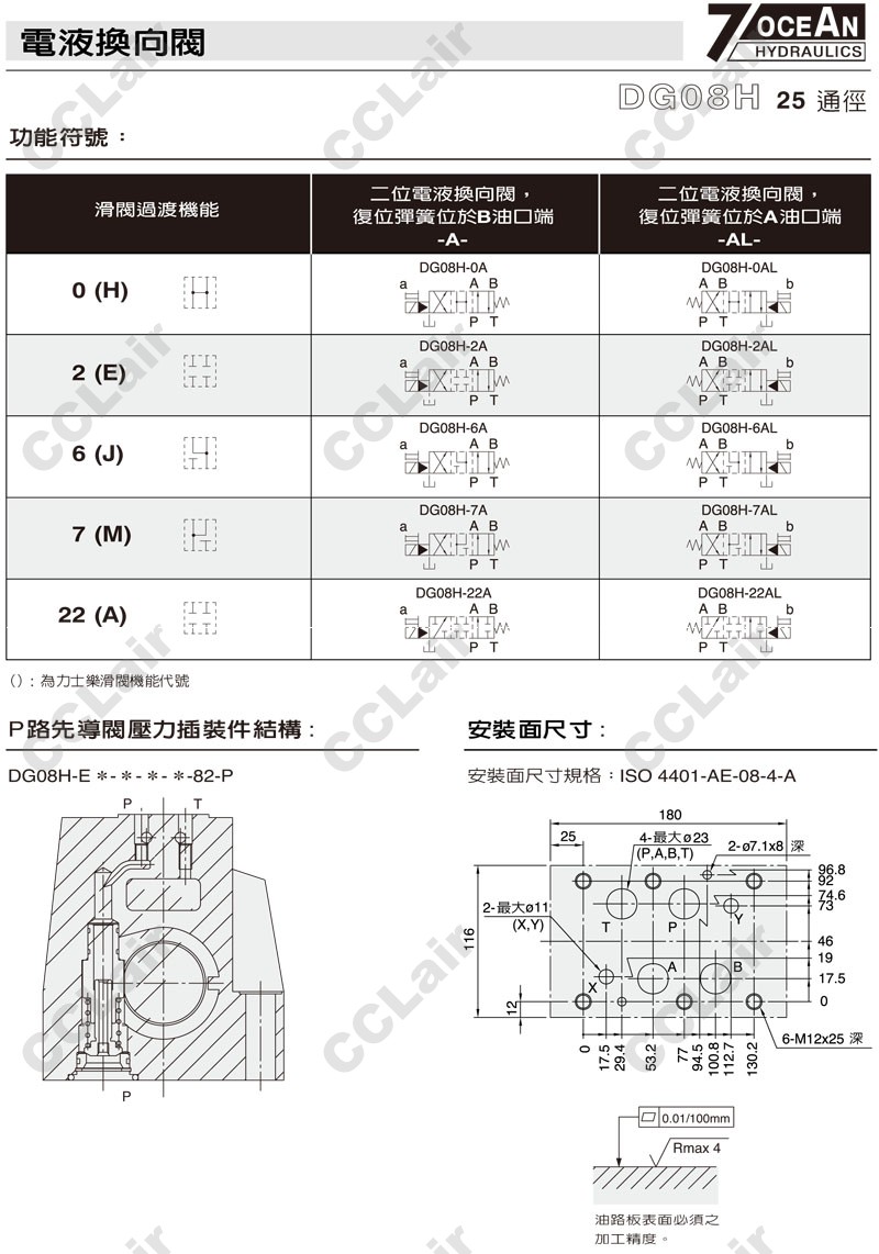 DG08H-E1,DG08H-E2,DG08H-E1-11BL-ET-A110-DN-82,DG08H-E2-11BL-E-A120-DN-82,7OCEAN七洋電液換向閥