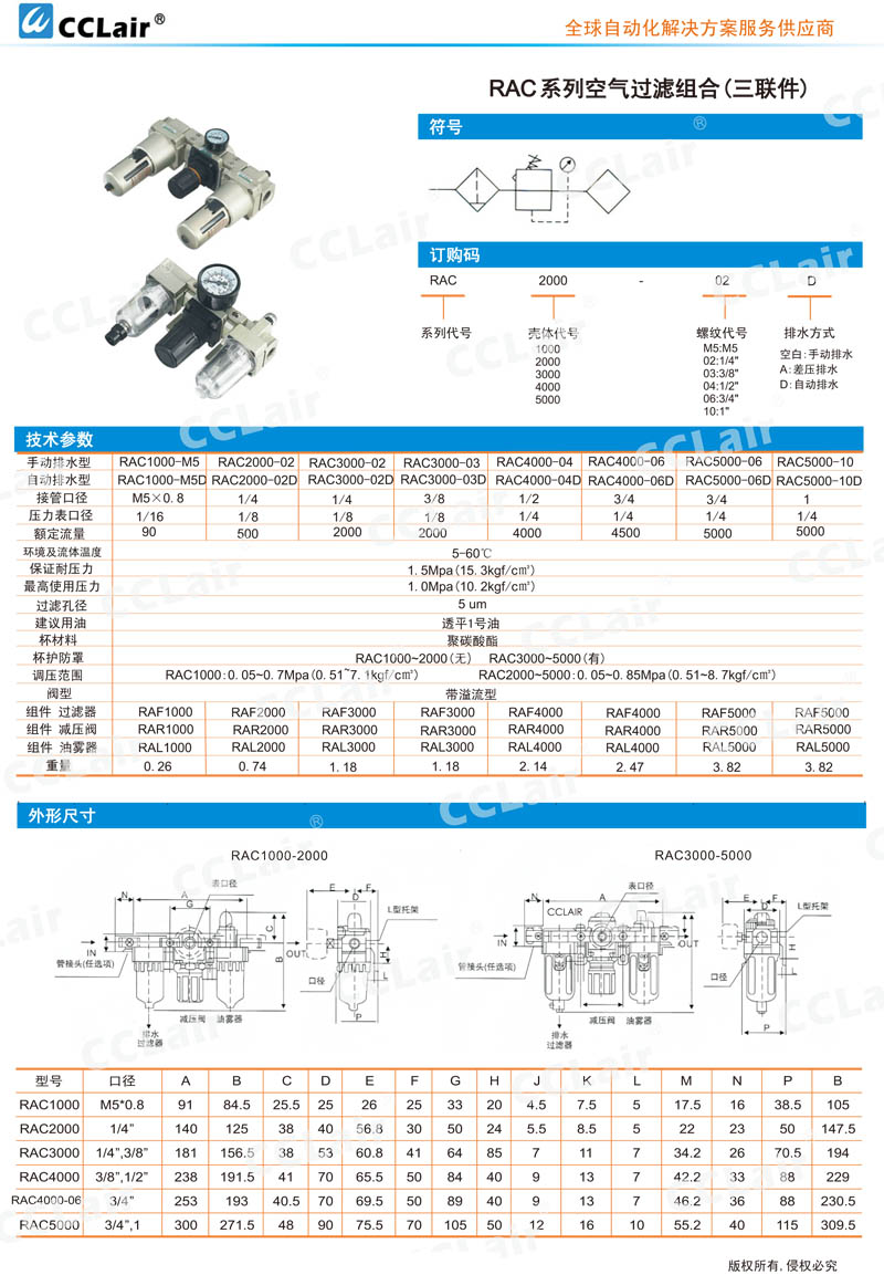 RAC1000,RAC1000,RAC3000,RAC4000,RAC5000,RAC5000-10D,RAC1000-M5,三聯(lián)件