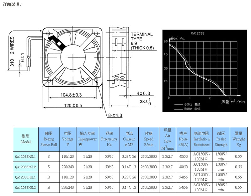 詳細(xì)信息 QA12038HSL1,QA12038HSL2,QA12038HBL1,QA12038HBL2,交流風(fēng)機(jī)