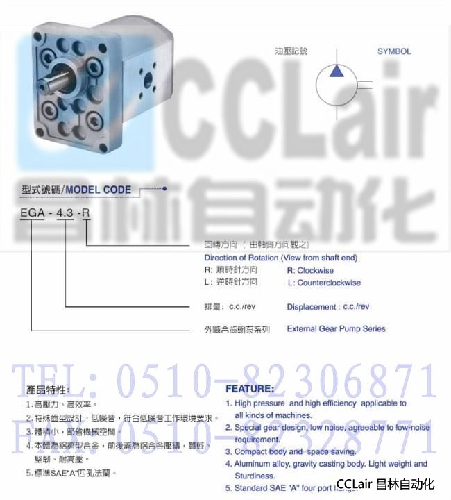 EGA-1.2,EGA-1.7,EGA-2.2,EGA-2.6,EGA-3.2,EGA-3.8,EGA-4.3,EGA-6.2,EGA-7.8,低噪音外嚙合齒輪泵