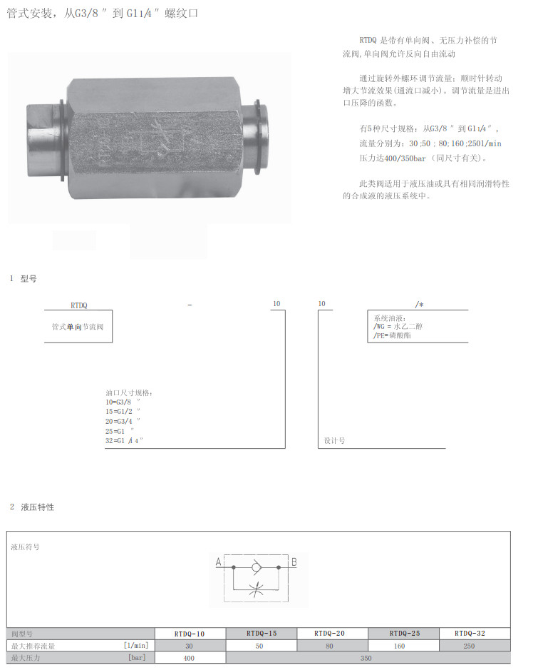 詳細信息 RTDQ-10-10,RTDQ-15-10,RTDQ-20-10,RTDQ-25-10,RTDQ-32-10,單向節(jié)流閥
