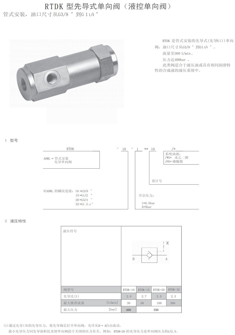 詳細(xì)信息 RTDK-10-1-10,RTDK-15-1-10,RTDK-20-5-10,RTDK-32-5-10,先導(dǎo)式單向閥
