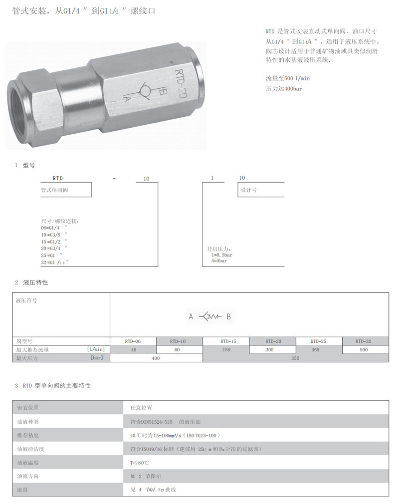 詳細(xì)信息 RTD-06-1-10,RTD-10,RTD-15,RTD-20,RTD-25,RTD-32,單向閥