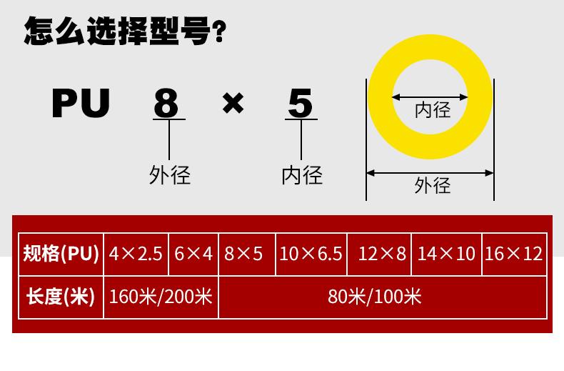 詳細信息 PU氣管 PU4*2.5,PU6*4,PU8*5,PU10*6.5,PU12*8,PU14*10,PU16*12
