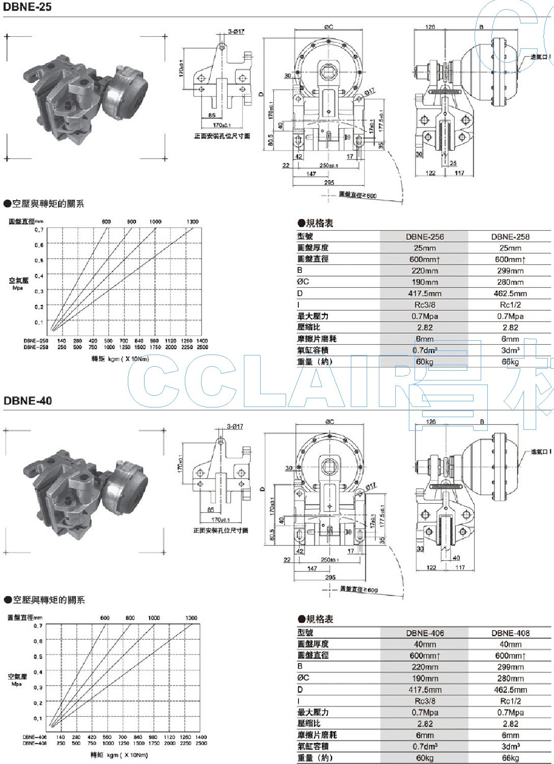 詳細(xì)信息 DBNE-256,DBNE-258,DBNE-406,DBNE-408,空壓碟式制動器