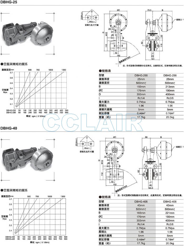 詳細信息 DBHG-255,DBHG-256,DBHG-405,DBHG-406,空壓碟式制動器