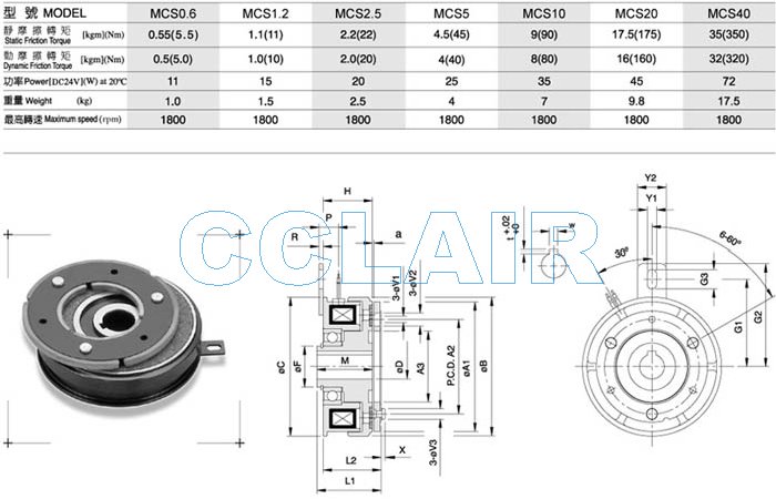 詳細信息 MCS0.6,MCS1.2,MCS2.5,MCS5,MCS10,MCS20,MCS40,電磁式離合器