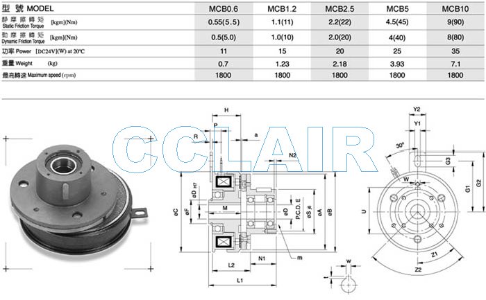 MCB0.6,MCB1.2,MCB2.5,MCB5,MCB10,MCB20,MCB40電磁式離合器