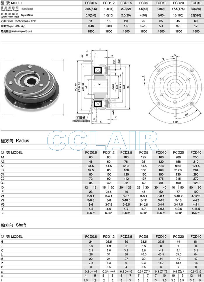 FCD0.6,FCD1.2,FCD2.5,FCD5,FCD10,FCD20,FCD40,電磁式離合器