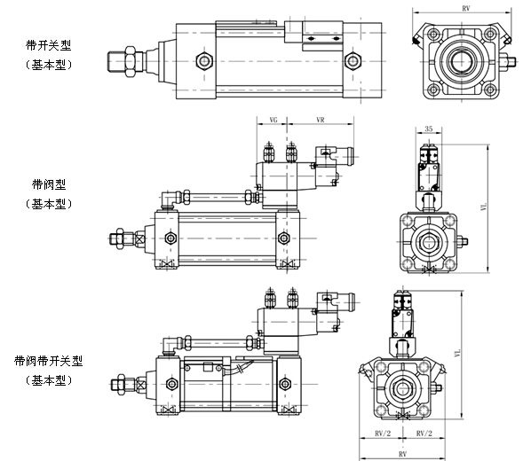 帶閥氣缸有單電控帶閥氣缸和雙電控帶閥氣缸。