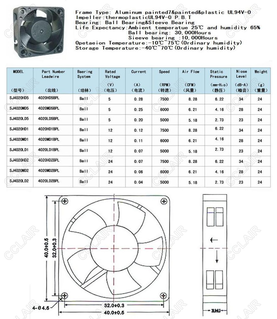 SJ4020HD5,SJ4020MD5,SJ4020LD5,SJ4020HD1,SJ4020MD1,SJ4020LD1,SJ4020,SANJI DC軸流風機