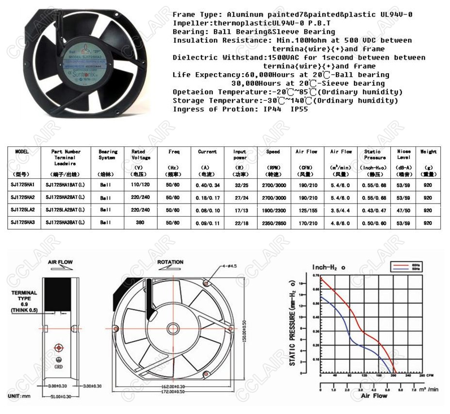 SJ1725HA1,SJ1725HA2,SJ1725LA2,SJ1725HA3,SANJU 軸流風機