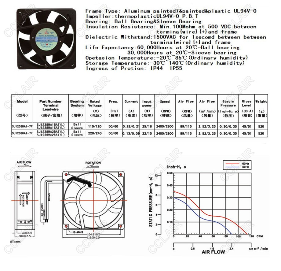 » SJ1238HA1-7F,SJ1238HA2-7F,SANJU 軸流風機