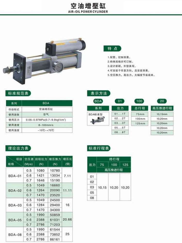 BDA-01,BDA-02,BDA-03,BDA-05,BDA-08,空油增壓缸