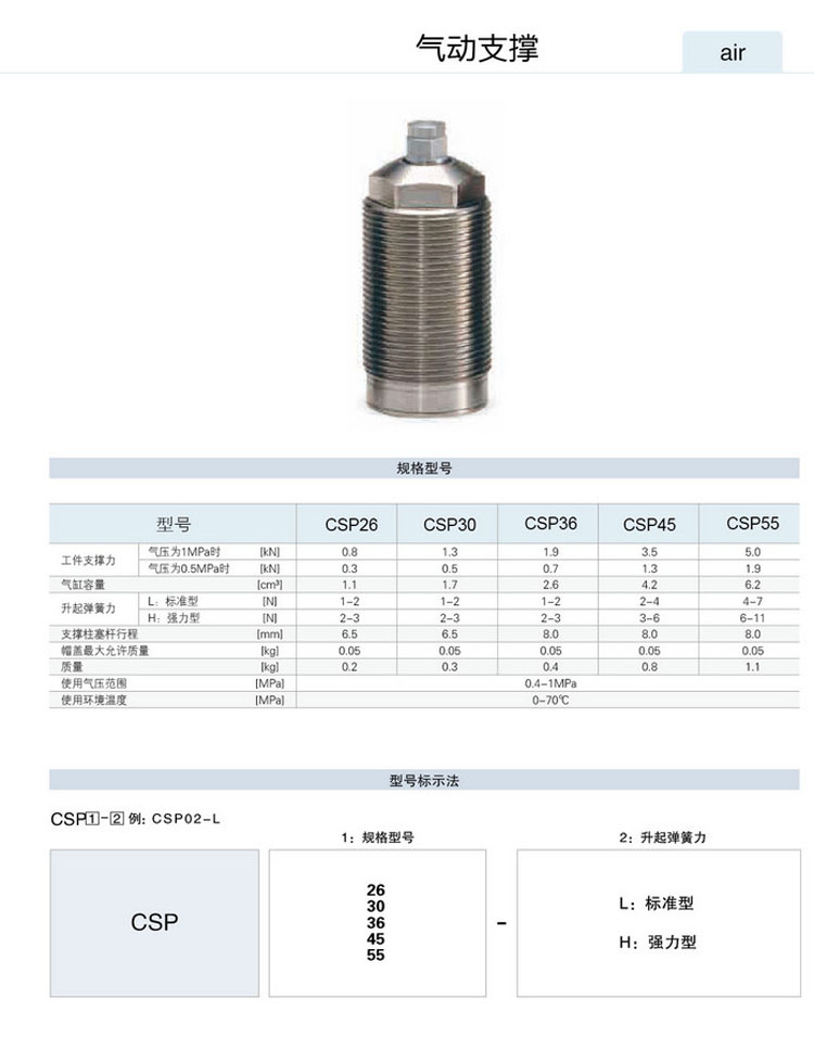 CSP26,CSP30,CSP36,CSP45,CSP55,氣動支撐缸
