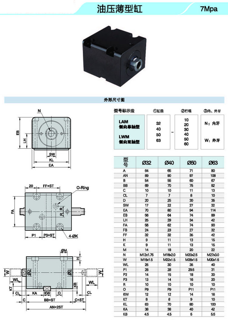 LAM32-10,LAM40-10,LAM50-10,LAM63-10,LAW32-10,LAW40-10,LAW50-10,LAW63-10,油壓薄型缸