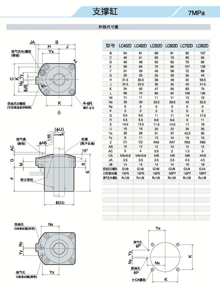 LC402D,LC482D,LC552D,LC652D,LC752D,LC902D,低壓支撐缸 詳細信息 LC402D,LC482D,LC552D,LC652D,LC752D,LC902D,低壓支撐缸