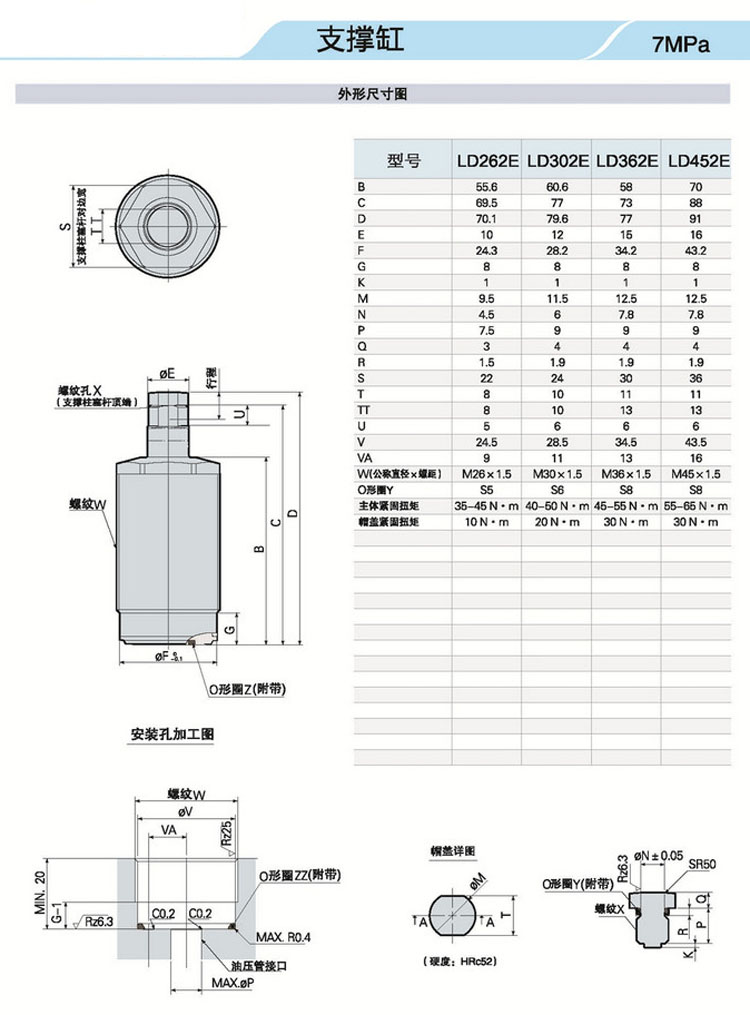 LD262E,LD302E,LD362E,LD452E,低油壓支撐缸