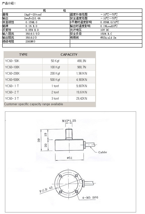 詳細(xì)信息 YC60-50K,YC60-100K,YC60-200K,YC60-500K,YC60-1T,YC60-2T,YC60-3T,setech稱重傳感器