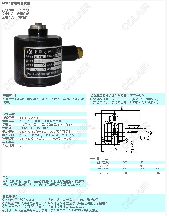 OKⅡC14,OKⅡC20,OKⅡC29,OKⅡC,防爆電磁線圈