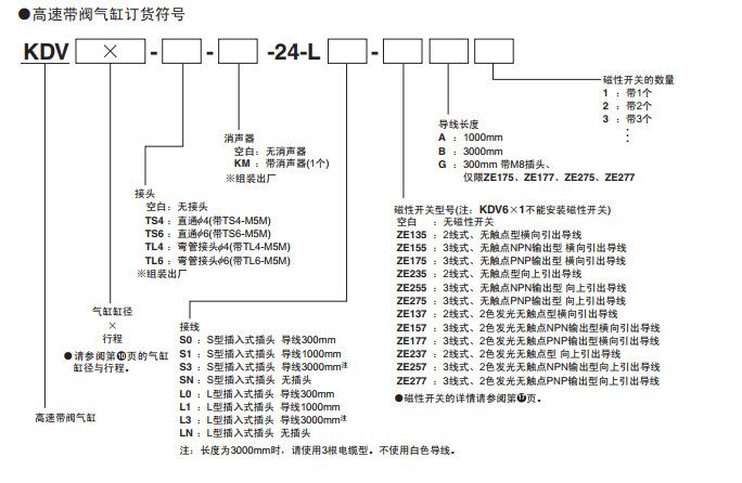 KDV6*1,KDV6*5,KDV6*10,KDV6*15,KDVT10*5,KDVT10*10,KDVT10*15,KDVT10*20,高速帶閥氣缸KDV系列