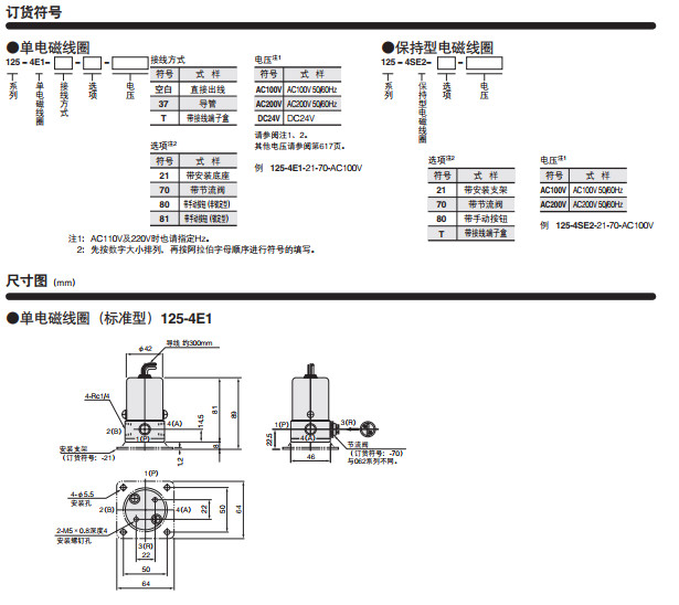 125-4E1,125-4E1-37,125-4E1-T,125-4E1-21,125-4E1-37-21,125-4E1-T-21,電磁閥圓形125系列