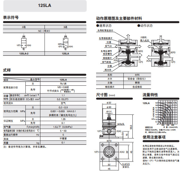 125LA,125LA-2,氣壓傳動閥125LA系列
