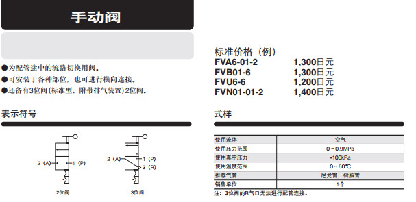 FVA6-01,FVA6-01-2,FVA6-02,FVA6-02-2,FVA6-03,FVA6-03-2,FVA8-01,帶快速接頭的手動閥