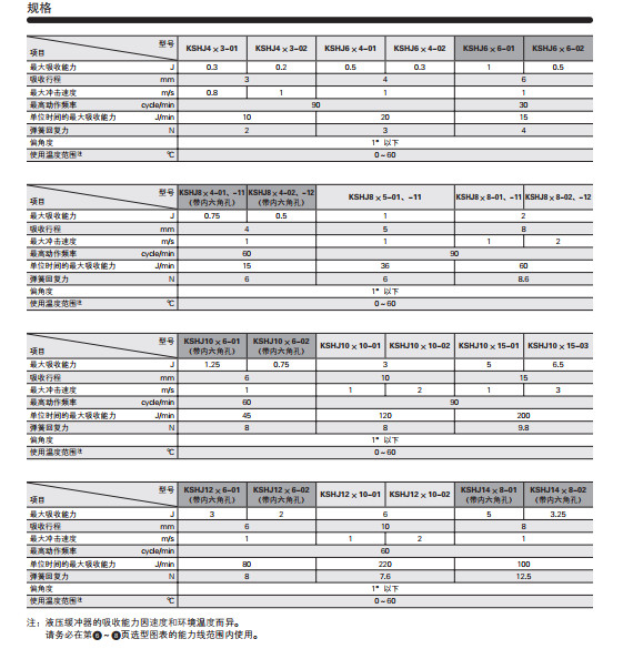 KSHJ4*3-01,KSHJ4*3-02,KSHJ6*4-01,KSHJ6*4-02,KSHJ6*6-01,直線節(jié)流孔型液壓緩沖器