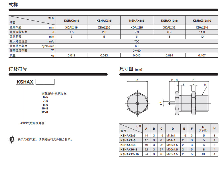 KSHAX6*5,KSHAX7*5,KSHAX8*6,KSHAX10*8,KSHAX12*10,專(zhuān)用緩沖器