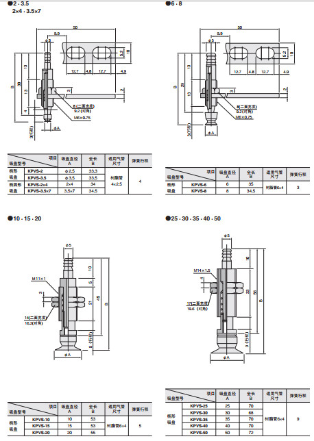 KPVS-2,KPVS-3.5,KPVS-2*4,KPVS-3.5*7,KPVS-6,KPVS-8,真空吸盤縱向配管內(nèi)置彈簧型KPVS系列
