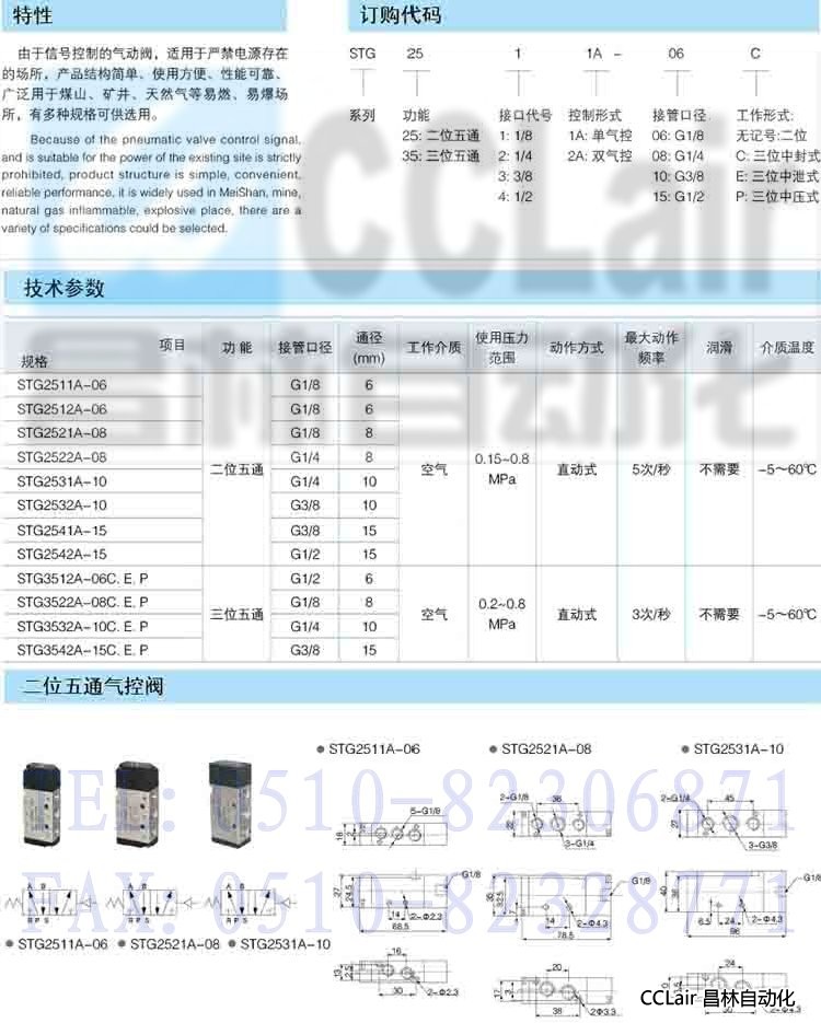STG3511A-06C,STG3511A-06E,STG3511A-06P,STG3522A-08C,三位五通氣控閥