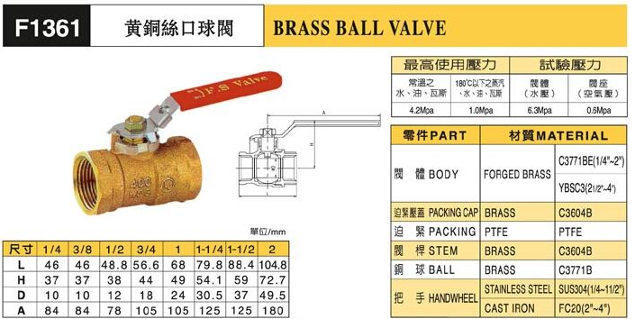F1361黃銅絲口球閥尺寸:
