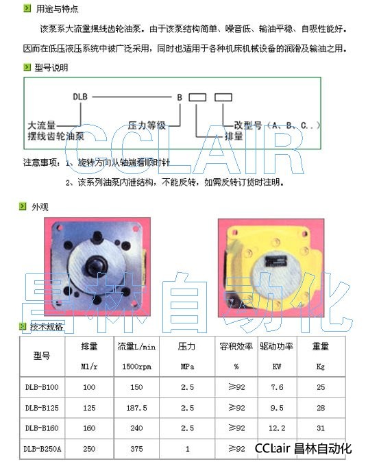 DLB-B100,DLB-B125,DLB-B160,DLB-B250A,大流量擺線齒輪油泵