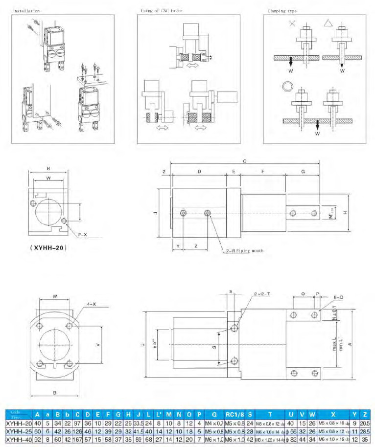 XYHH-20M-PSX16,XYHH-25M-PSX26,XYHH-40M-PSX41,Shinya平行式空氣夾持器