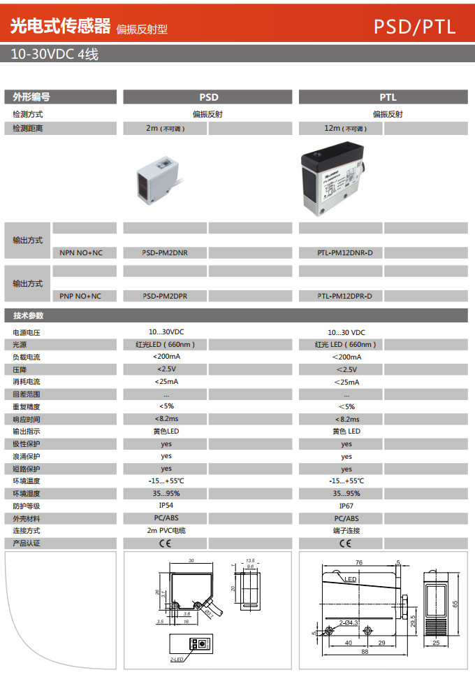 詳細信息 PSD-PM2DNR,PSD-PM2DPR,PTL-PM12DNR-D,PTL-PM12DPR-D,光電式傳感器