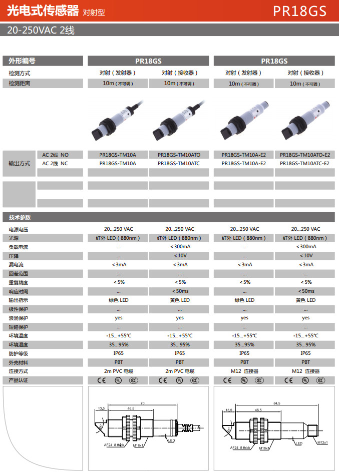 PR18GS-TM10A,PR18GS-TM10ATO,PR18GS-TM10ATC,PR18GS-TM10A-E2,PR18GS-TM10ATO-E2,PR18GS-TM10ATC-E2,光電式傳感