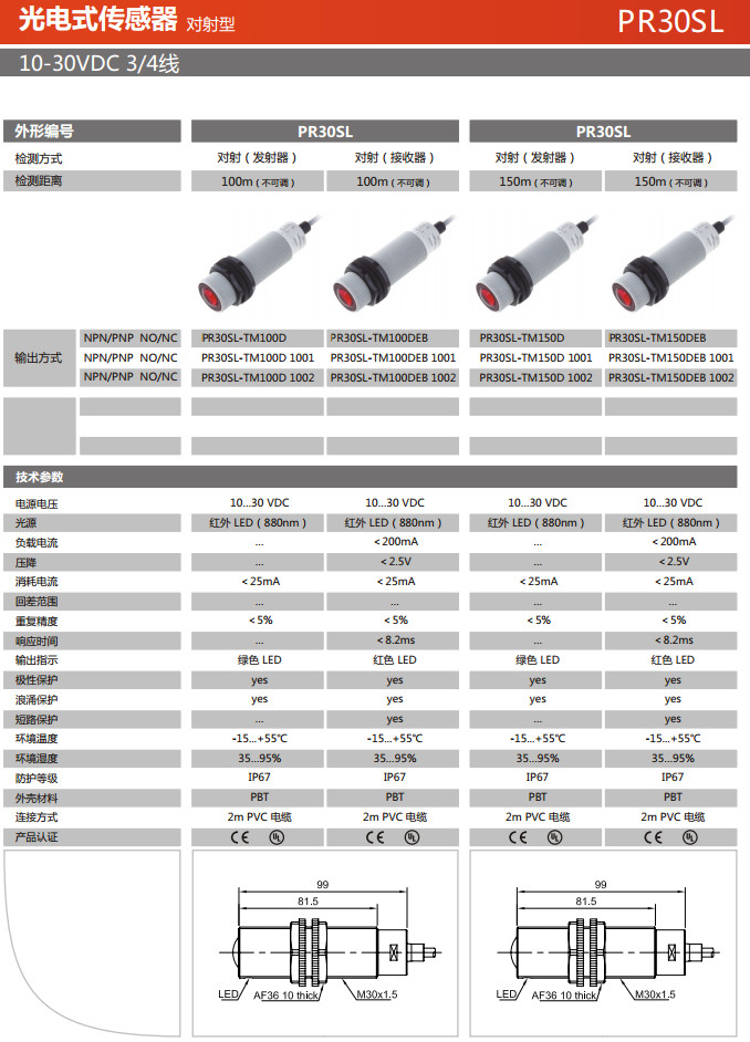 詳細(xì)信息 PR30SL-TM100D,PR30SL-TM100DEB,PR30SL-TM150D,PR30SL-TM150DEB,光電式傳感器