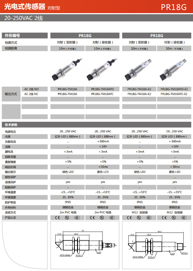 詳細信息 PR18G-TM10A,PR18G-TM10ATO,PR18G-TM10ATC,PR18G-TM10A-E2,PR18G-TM10ATO-E2,PR18G-TM10ATC-E2,光電式傳感器