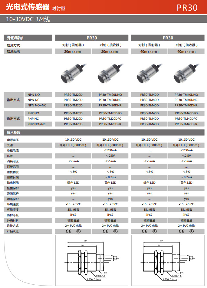PR30-TM20D,PR30-TM20DNO,PR30-TM20DNC,PR30-TM20DNR,PR30-TM20DPO,PR30-TM20DPC,光電式傳感器