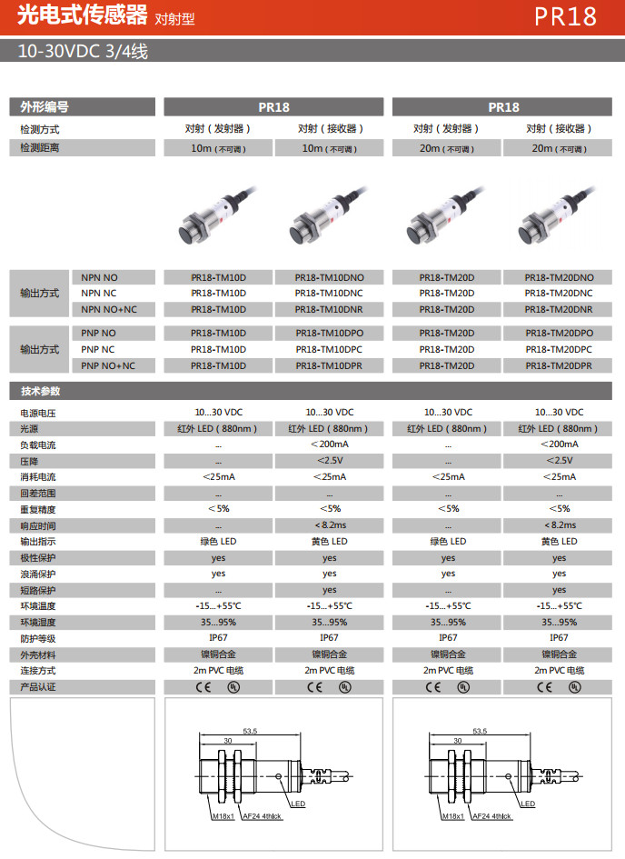 PR18-TM10D,PR18-TM10DNO,PR18-TM10DNC,PR18-TM10DNR,PR18-TM10DPO,光電式傳感器