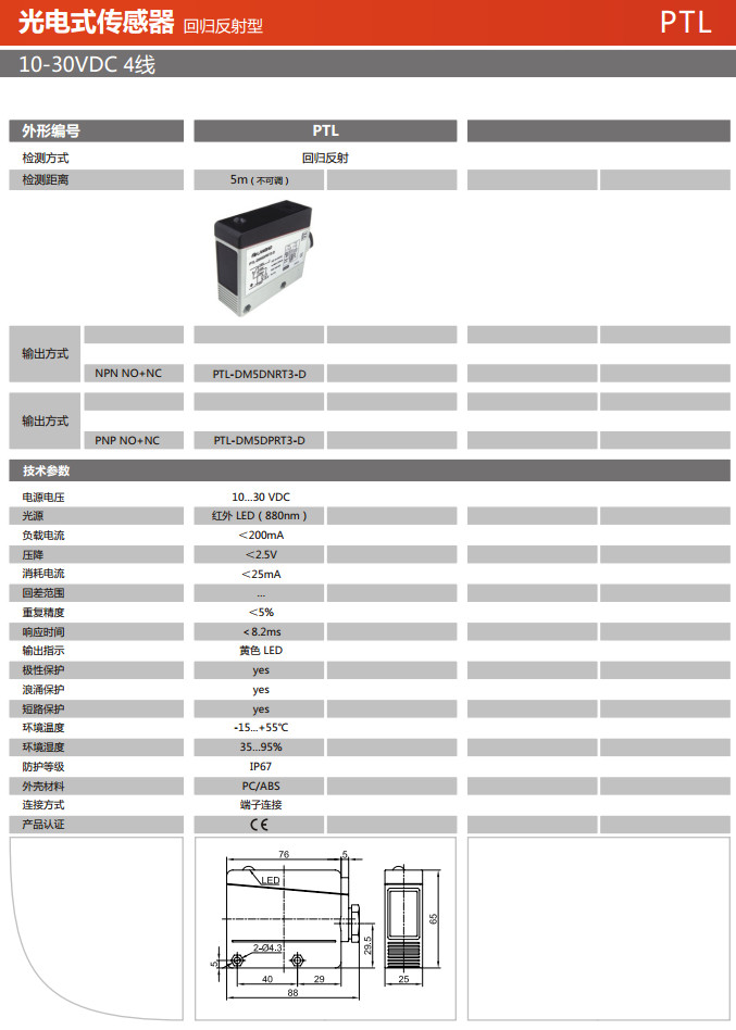PTL-DM5DNRT3-D,PTL-DM5DPRT3-D,光電式傳感器